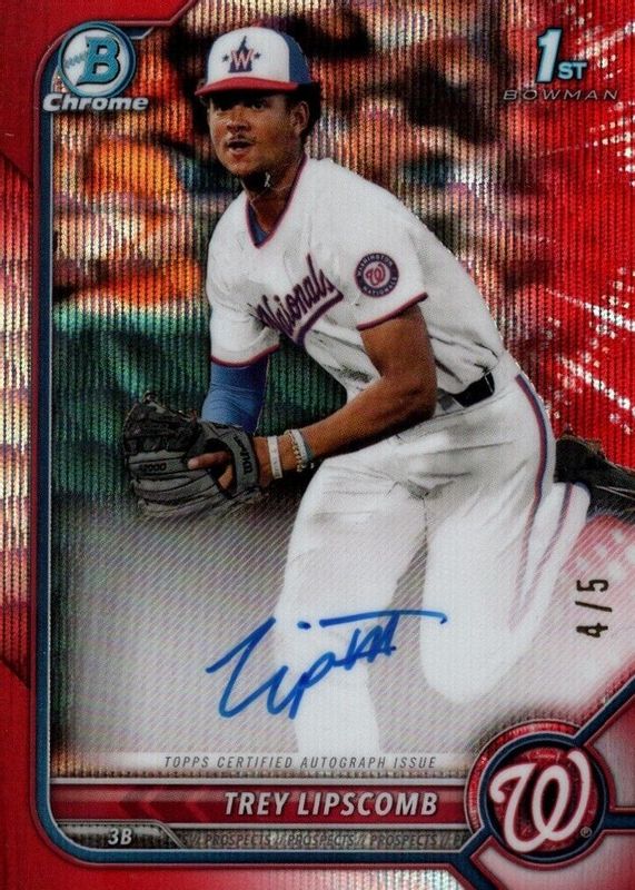 Another Bowman Draft 2022 prospect, Lipscomb can be overlooked in this set by the other National’s top prospect, Elijah Greene. This is a good opportunity to grab a prospect on the rise for a good value. I’d recommend picking up a color auto, specifically, the blue refractor (/150) which can be secured for a measly $35-$45.