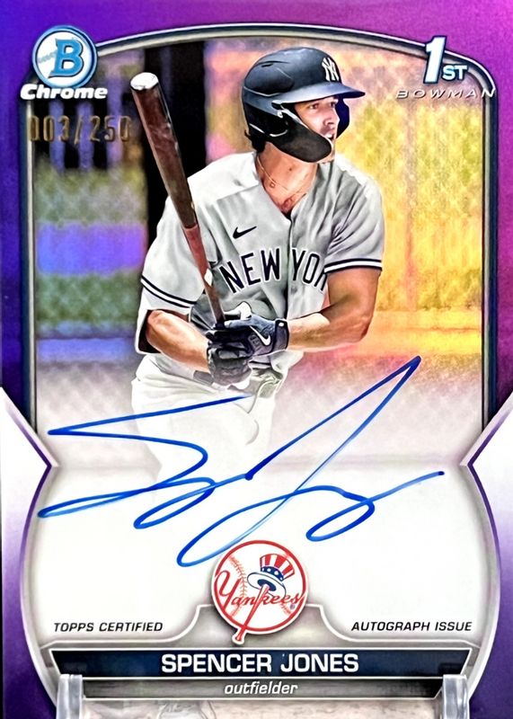 Topps has done a fantastic job of increasing print runs (meaning printing more cards in the market leading to lower value), but will slip in a few monster “chase cards” to keep interest and sales up (think Tom Brady’s Montreal Expos card in 2023 Bowman Draft or the Ohtani/Ruth dual-autograph from Topps Definitive). You have a better chance of hitting the lottery than pulling these cards that are worth five figures.