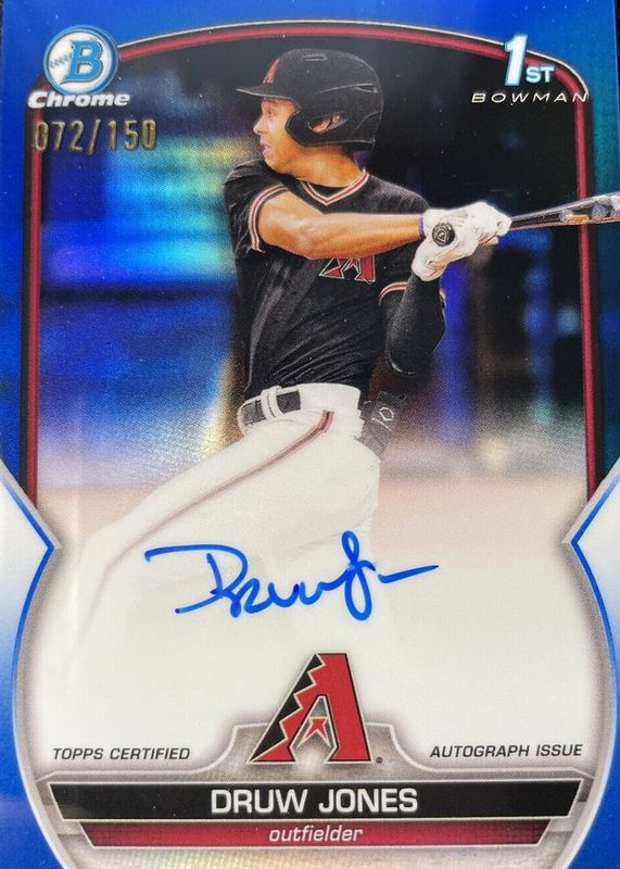 Ahh, Mr. Druw Jones. The ideal story for the impatience of the baseball card collector. He is the son of one of the great center fielders of our generation Andruw Jones, one of my brother’s favorite players growing up in the 1990’s. For that reason, Jones was at Jackson Holliday’s level of hype when each were taken 1-2 in the 2022 MLB Draft.