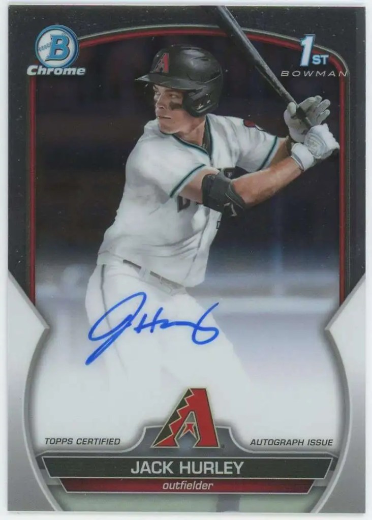 Being a 2023 selection, he’s a player you can find in the Bowman Draft 2023 set. With the unreasonable prices for a 2023 Draft Hobby, this is a perfect player to focus on the singles market. You can get a base auto as cheap as $8 and a colored auto as low as $40. With the power and 5 tool potential he’s someone I’m willing to spend on and watch him take the desert city by storm.