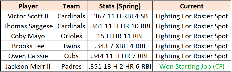 Last week we discussed players that were sent to minor league camp. Let’s get positive. Here are players who are putting up a fight to make it into the major league clubhouse on opening day.