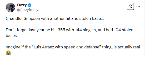 We had the pleasure of seeing him live last year in high-A. This kid is impressive. The fastest player in all of baseball, possibly any team sport. And he’s making a statement. This was my favorite comp I’ve seen: