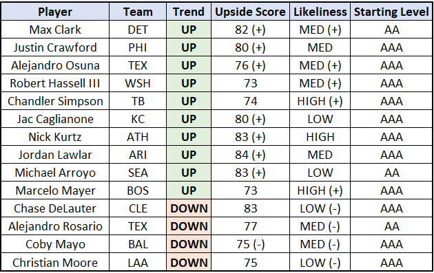 “Here are the prospects that jumped up or down our rankings sheet going into MiLB Opening Week“