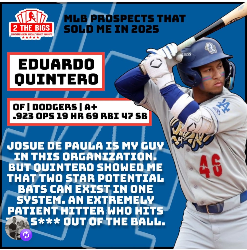 Here’s the second Dodger on this list, and he’s not the last. Quintero was featured on my “Prospects That Sold Me In 2025” post on social media. Here’s said post:
